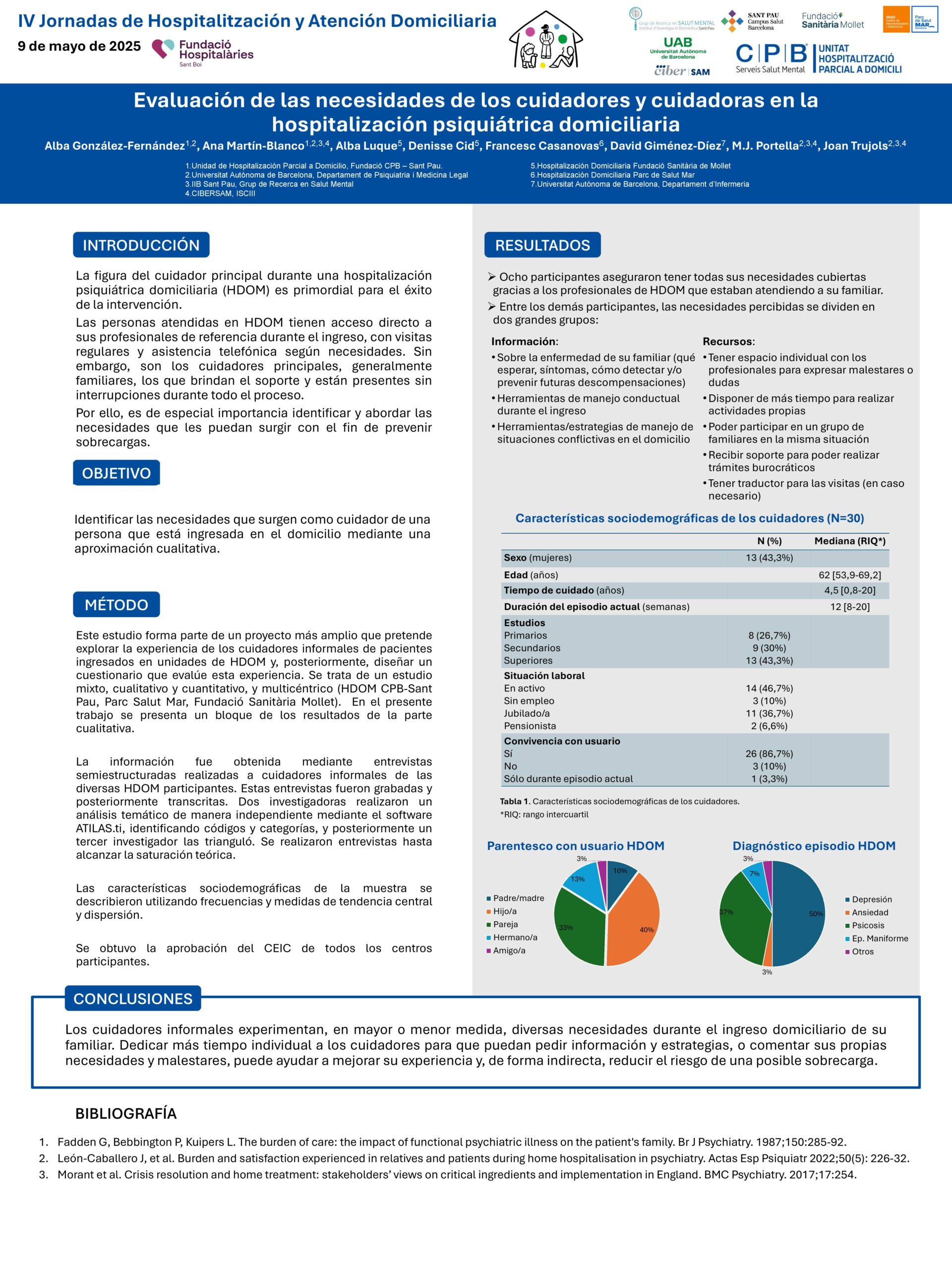 - PRIMER PREMI: “Evaluación de las necesidades de los cuidadores y cuidadorasen la hospitalización psiquiátrica domiciliaria”. CPB. Alba González.